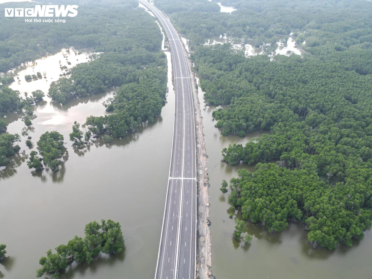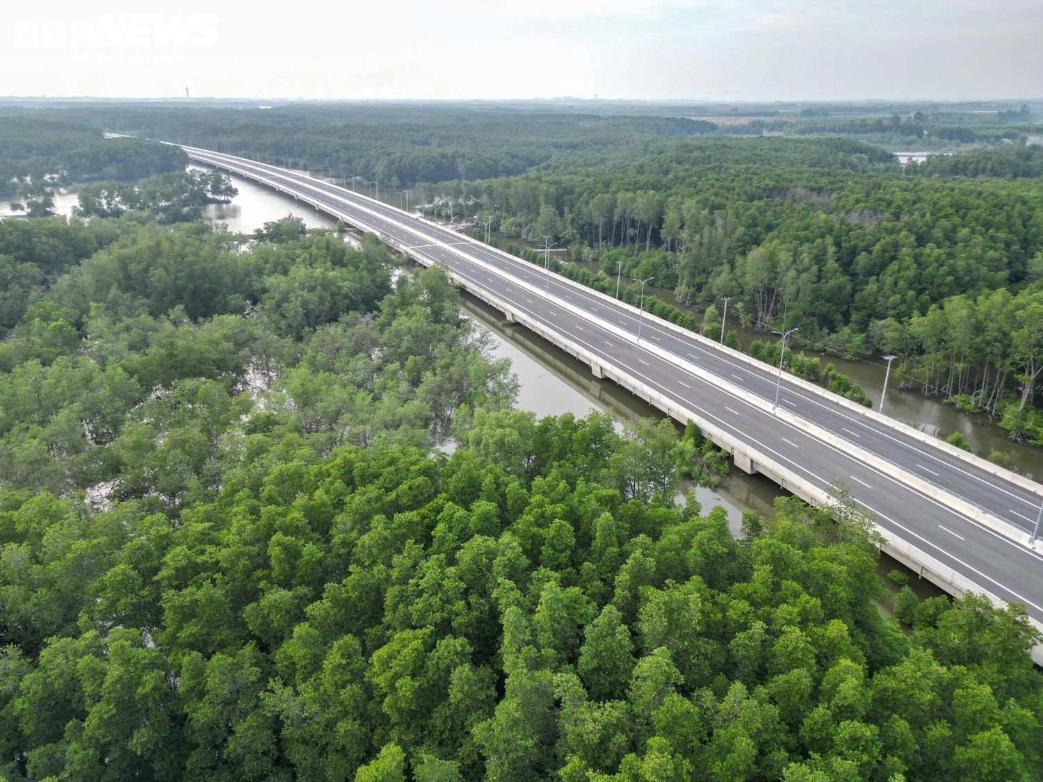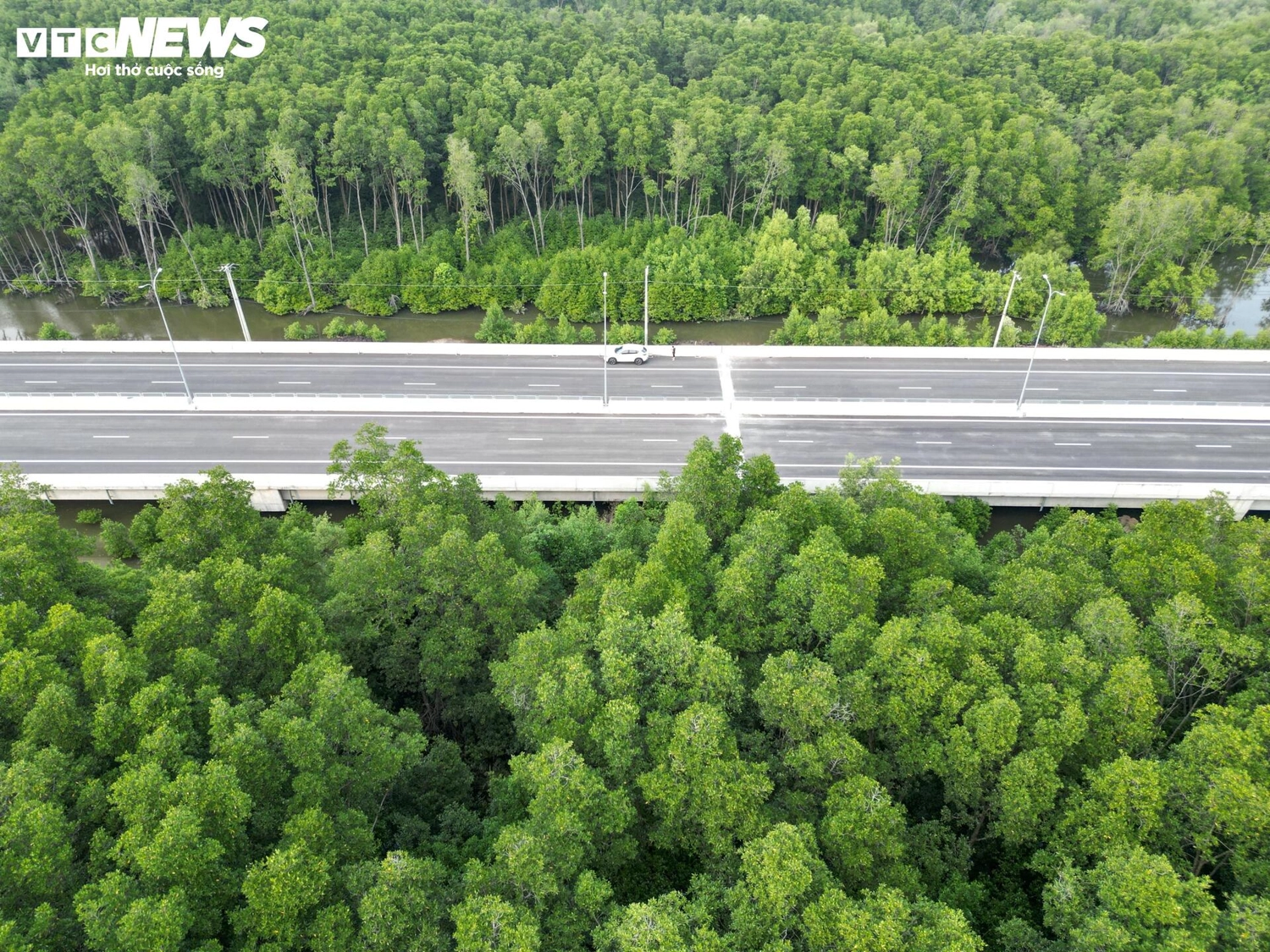 Cung đường xuyên rừng ngập mặn đẹp như tranh vẽ bởi màu xanh chạy dài trên cao tốc.