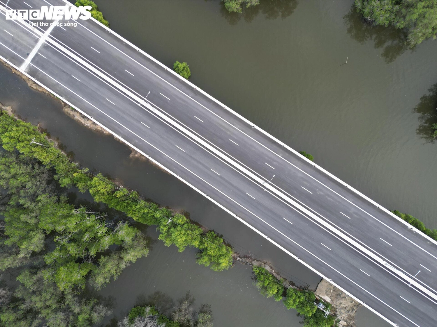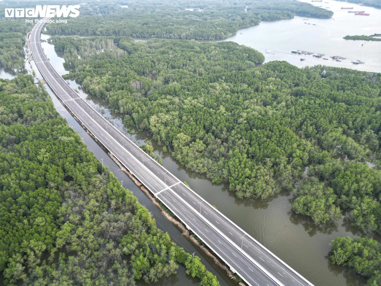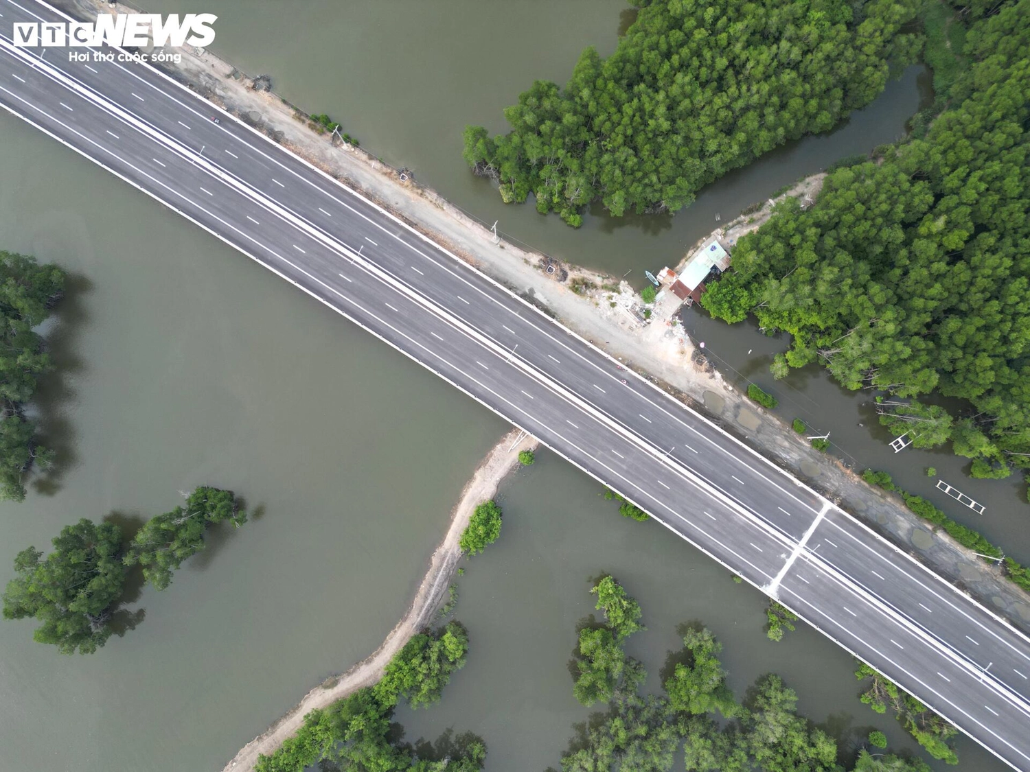Cung đường xuyên rừng ngập mặn đẹp như tranh vẽ bởi màu xanh chạy dài trên cao tốc.